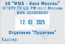 Штемпельная подушка: синяя. Месяц: цифрами. Разделители: точки.