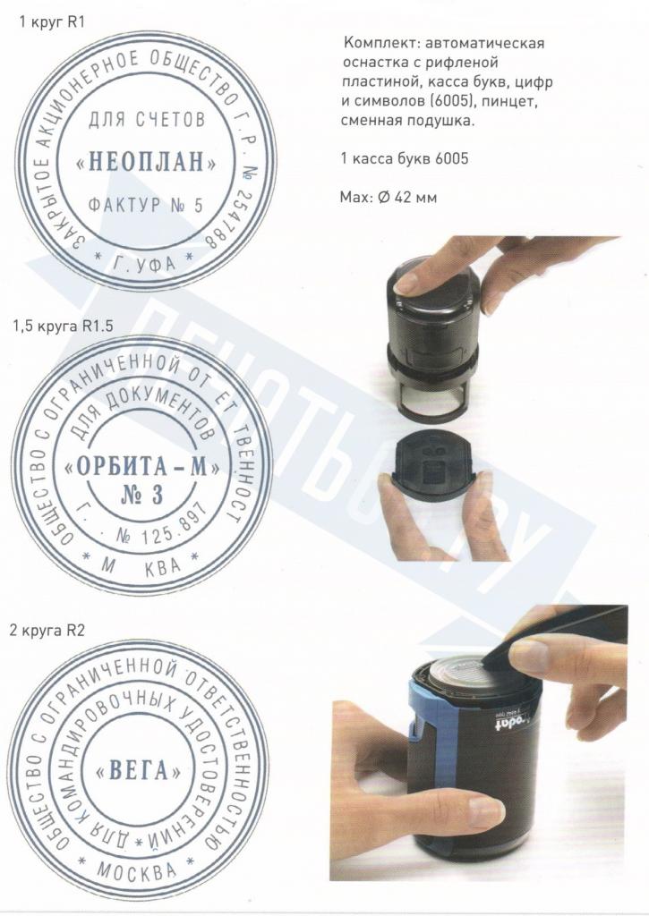 Печать ООО с логотипом на металлической автоматической оснастке
